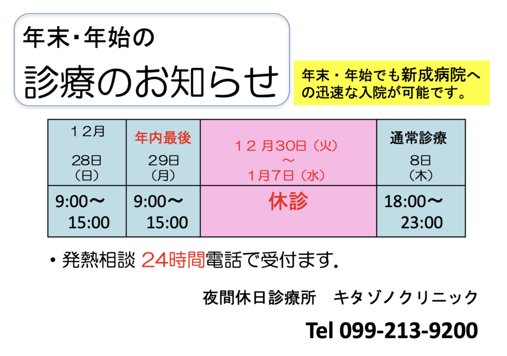 (開院30分前から電話予約開始 099-213-9200)
